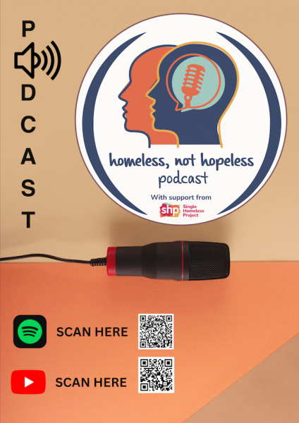 Homeless, Not Hopeless is a podcast that explores real stories from people who have experienced homelessness and are working to rebuild their lives. Through honest conversations, the podcast looks at what helps people move forward, whether they grew up feeling overwhelmed, took an unsteady path into adulthood, or had to restart after hitting a low point. The podcast focuses on practical steps, support systems and the moments that shift someone’s direction. The aim is for listeners to hear what has worked for others, notice where their own experiences resonate and see that although life doesn’t start equally for everyone, progress and change are still possible. It’s not about perfect answers, it’s about exploring real journeys toward stability, confidence and independence. Homeless, Not Hopeless is co-produced by staff and residents of the Single Homeless Project, combining lived experience and professional insight to offer an honest look at homelessness, recovery and resilience. The podcast is available on Spotify and YouTube. If you feel that your story or recovery journey could contribute to the podcast, Homeless, Not Hopeless will be happy to hear from you, please get in touch: AZajac@shp.org.uk