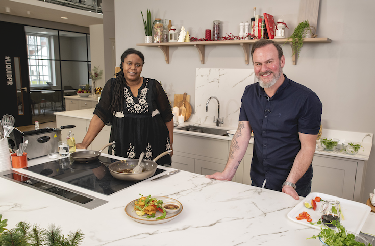 Brummie chefs cook up a fundraising feast: Michelin star chef Glynne Purnell (R), who is often on TV, teamed up with Birmingham City Council to host a virtual cooking show on 8 December. The Big Birmingham Cook-A-Long will support a scheme helping homelessness charities via Change into Action. Guest appearances included Birmingham Cllr Sharon Thompson (L), in charge of Homes & Neighbourhoods, who was a homeless teen.