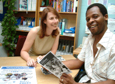 Having received further funding from various sources, including the London Development Agency, the project is now available across the whole of London. Co-ordinator Laura Black, pictured setting up an account with Lorenzo, is enthusiastic about the positive impact it will have, stating, "We're all very excited about getting it up and running". Both number and voicemail are initially set up for a period of three months, which can be extended for longer if required. It is available through St Mungo's Ealing outreach team, North Lambeth Day Centre (during the building work from their office) and Bridge Resource centre. Registration is also available through an increasing number of partner projects, including St Martin's, Streetshine, Centrepoint and the Big Issue.