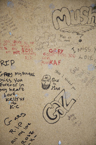 Tributes marked the railings outside St John's Church, Waterloo, London, where Gary died in early October.