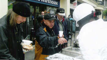 Friendly service goes with the good food, and a supply of clothes is often provided to those in need. They also frequently invite those interested back to their church afterwards, where a wash-up and rest from the rigours of the daily grind are available.